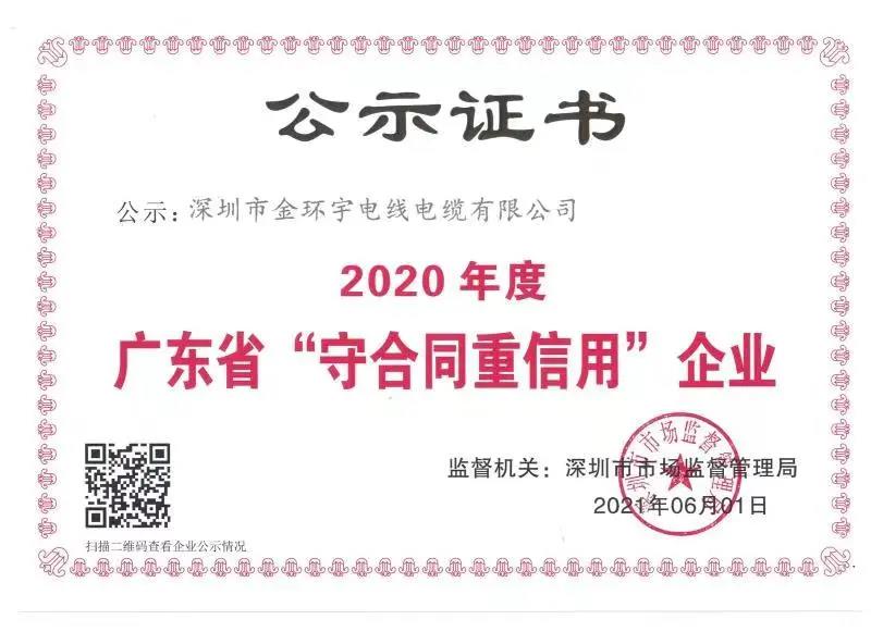 企業(yè)誠(chéng)信守約經(jīng)營(yíng)是推動(dòng)社會(huì)經(jīng)濟(jì)健康發(fā)展的保證。2021年,深圳市質(zhì)量強(qiáng)市促進(jìn)會(huì)繼續(xù)認(rèn)真開展“廣東省守合同重信用企業(yè)”公示活動(dòng)的宣傳、發(fā)動(dòng)、核查和推薦工作,免費(fèi)指導(dǎo)推薦會(huì)員企業(yè)參加了“廣東省守合同重信用企業(yè)”公示活動(dòng),經(jīng)深圳市市場(chǎng)監(jiān)督管理局審查、廣東省市場(chǎng)監(jiān)督管理局審定,288家會(huì)員企業(yè)榮獲2020年度“廣東省守合同重信用企業(yè)”稱號(hào)。金環(huán)宇躋身其一。