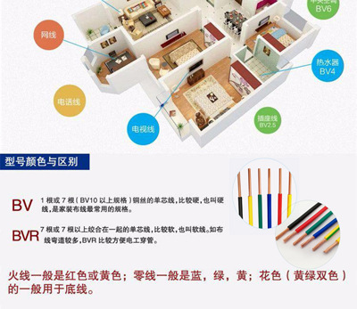 每個房間一路線,包括插座和燈,比如3室2廳1廚1衛(wèi),應(yīng)該是7到10路線,室3路,廳2路,廚衛(wèi)各一路,這是7路,如果還有立式空調(diào)1路,熱水器1路,弱電電源1路,就是10路。