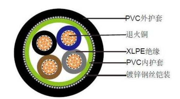 1、鎧裝電纜表示電纜的最外保護(hù)層采用鋼帶或者鋼絲纏繞,用于保護(hù)電纜不受外部機(jī)械力的破壞。